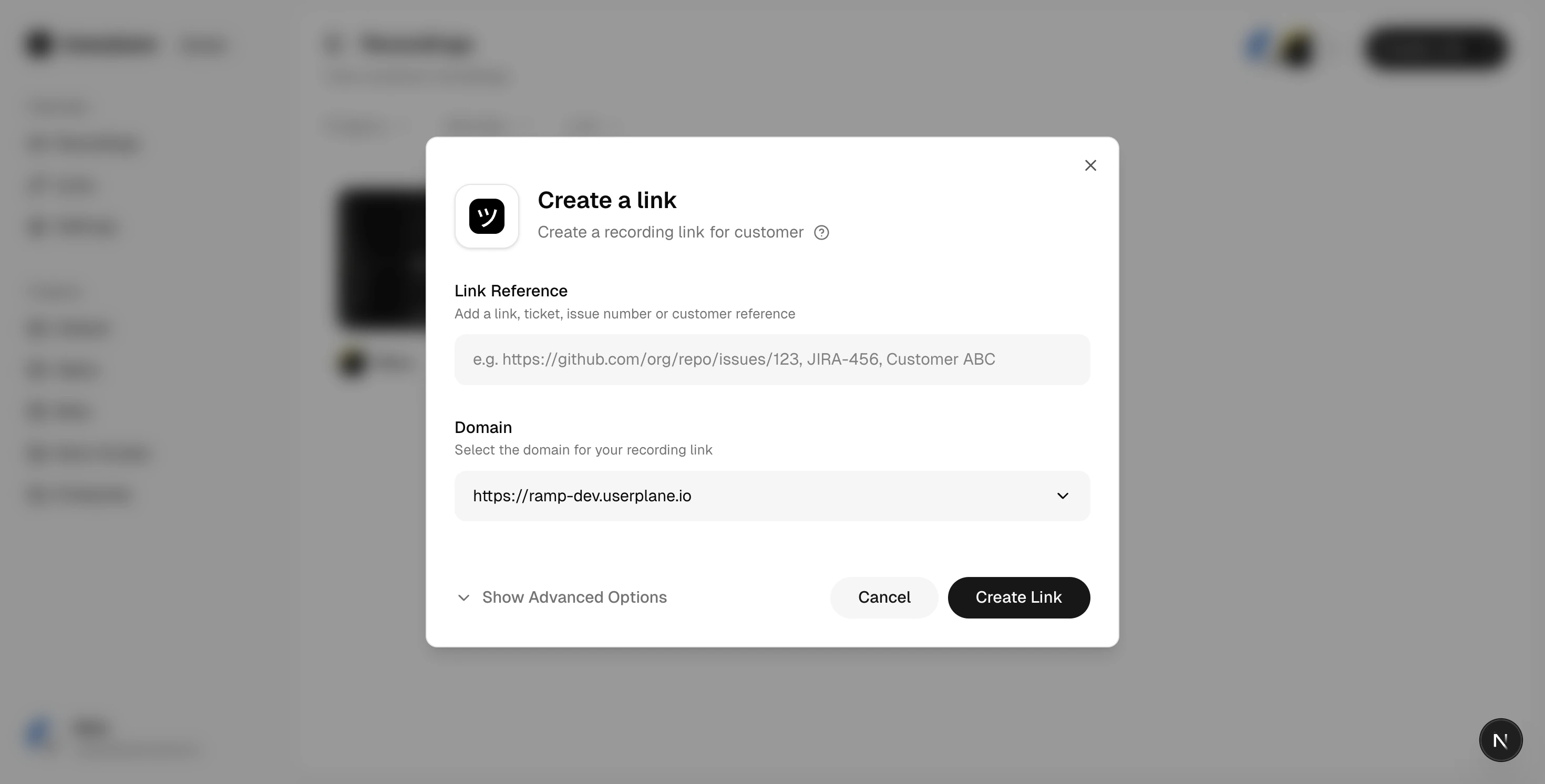 Create a recording link from your dashboard, the Chrome extension, or directly inside an Intercom,