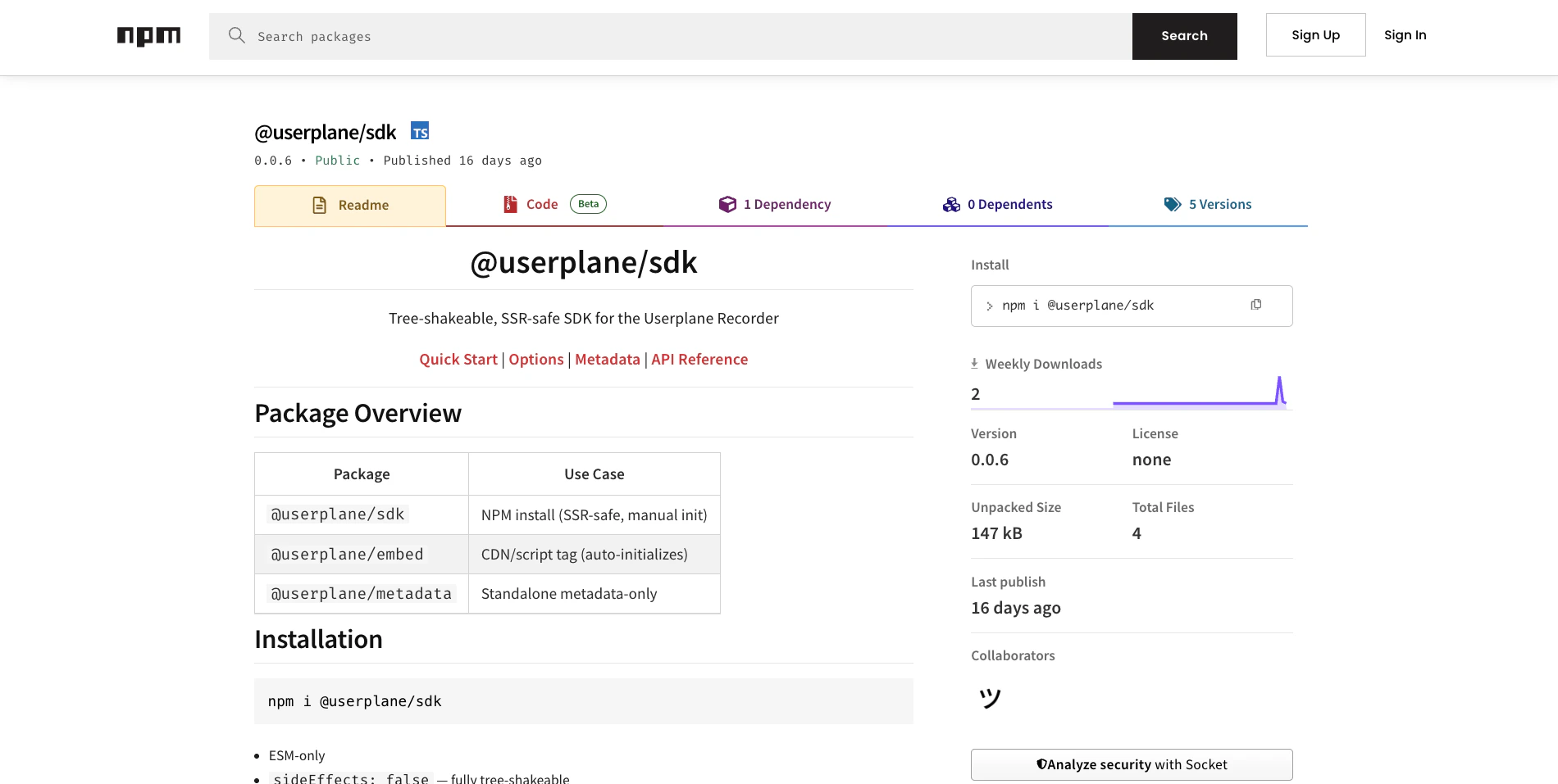 You can load Userplane via CDN snippet or install it as an npm package.Embed script (quickest)