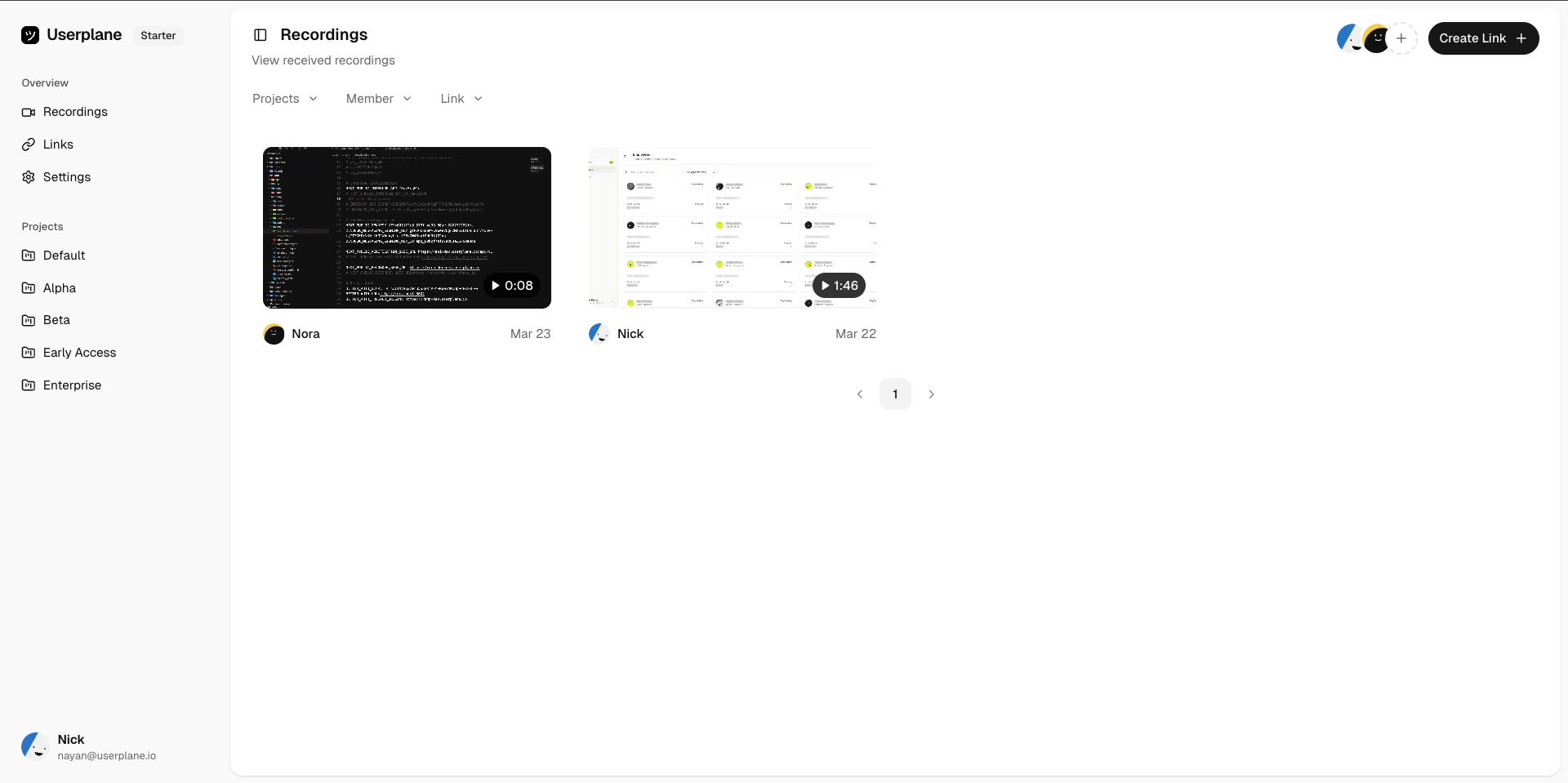 Once the customer submits, the recording appears in the Userplane dashboard.Open the recording