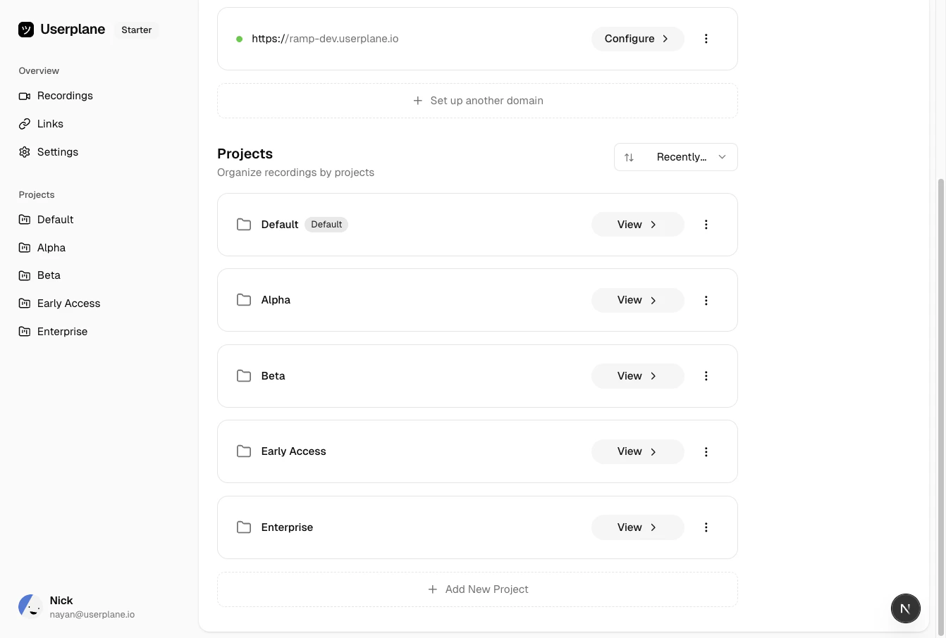 area, customer segment, or team. Projects keep recordings organized and make filtering easy.