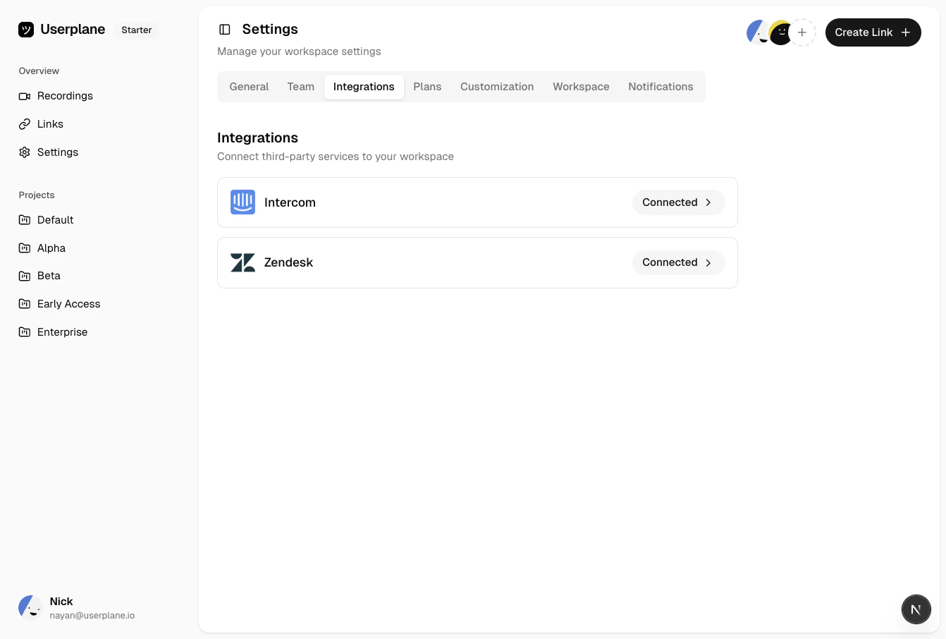 Complete the OAuth flow. Userplane will appear in your team’s Intercom inbox as a sidebar