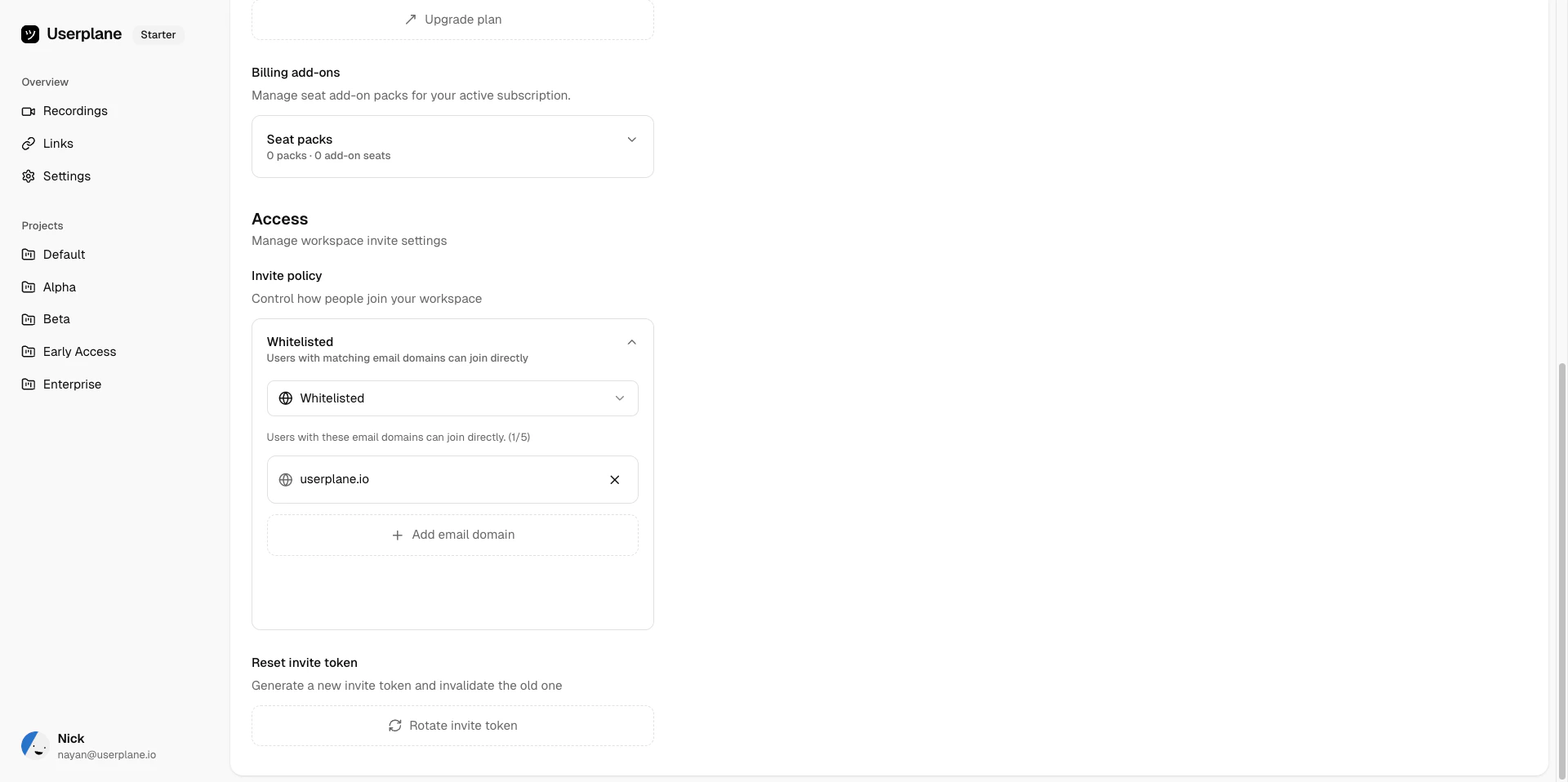 Whitelist your company email domain so teammates can join without individual invites.