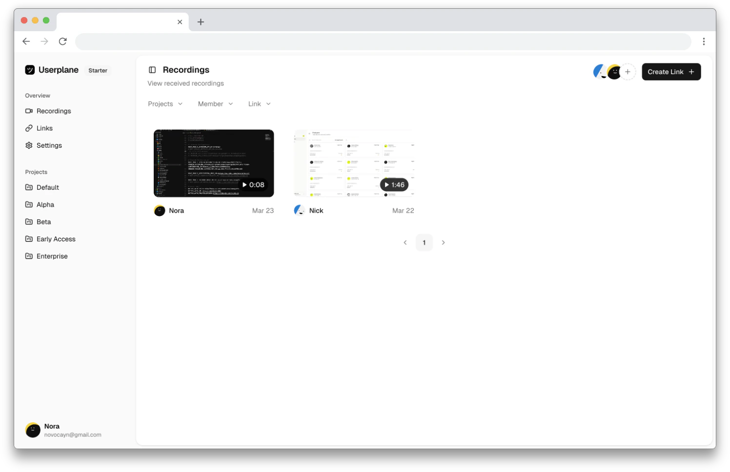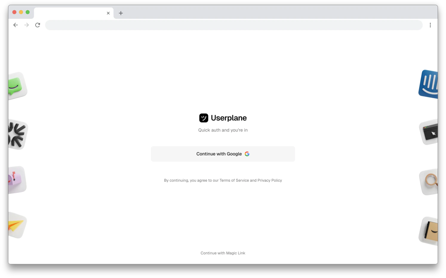 A new tab opens to the Userplane dashboard. Sign in with your account.