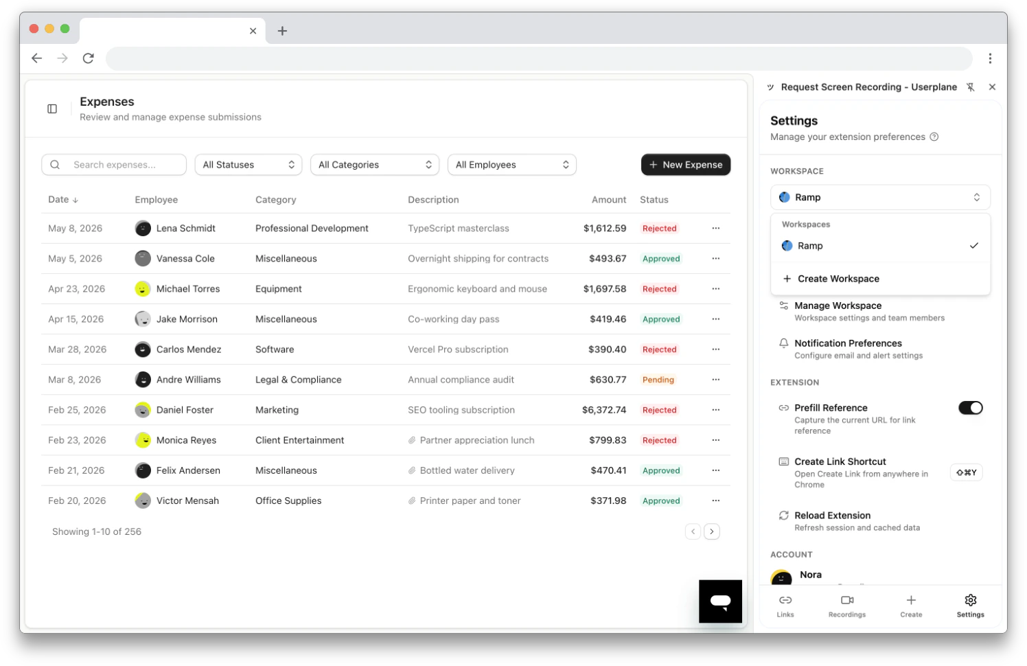 - Chrome Extension Settings — configure workspace, preferences, and account settings.