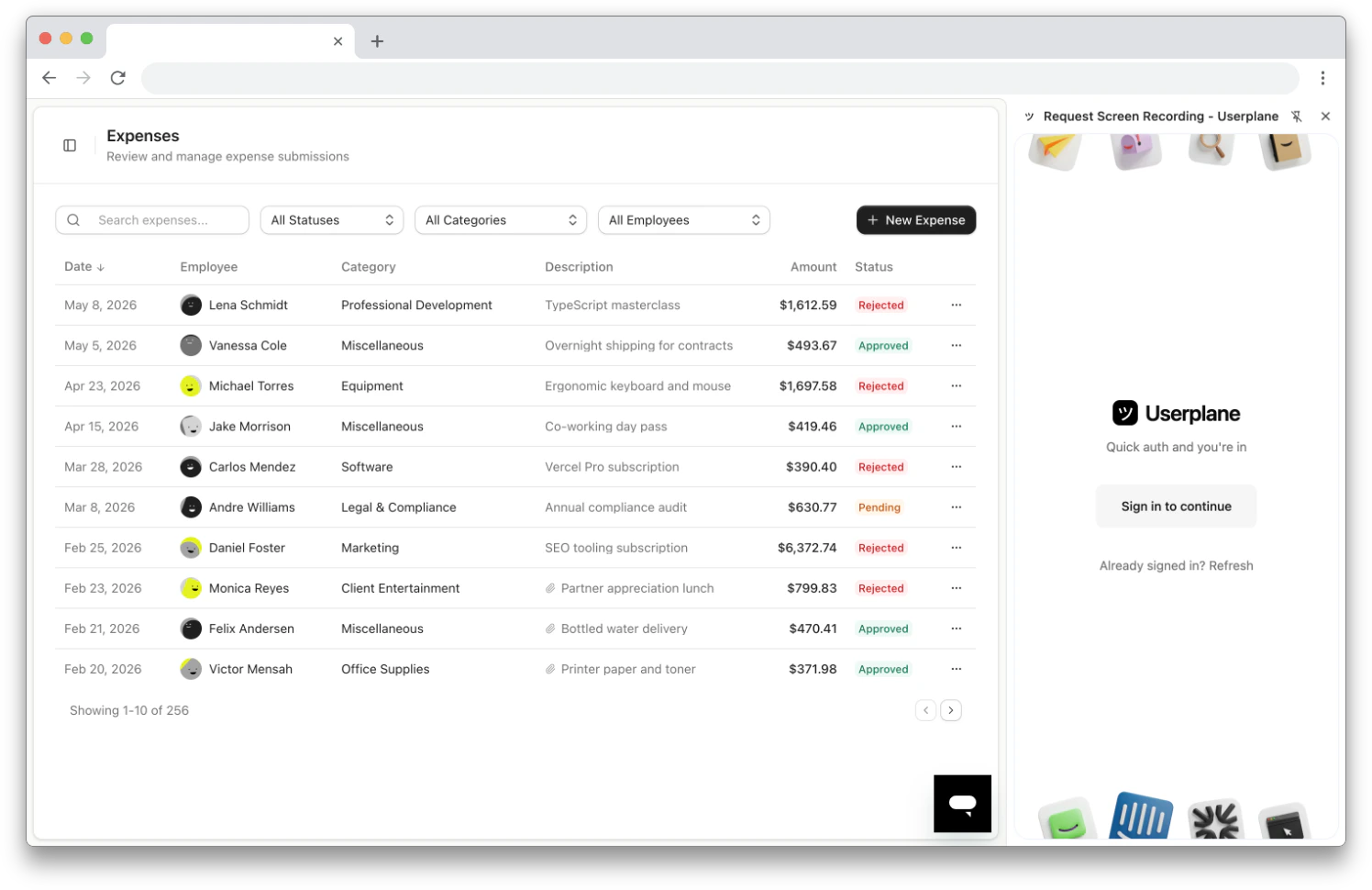 | Side Panel | Displaying the Userplane interface alongside your browser |
