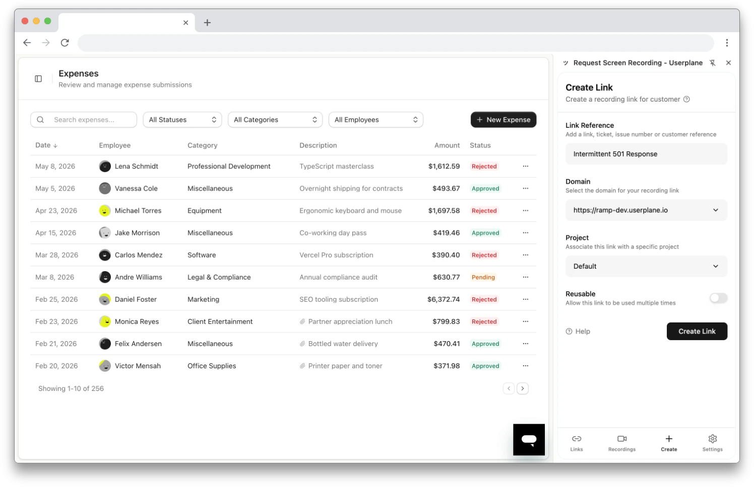 - Requesting a Recording — creating links from the Userplane dashboard.