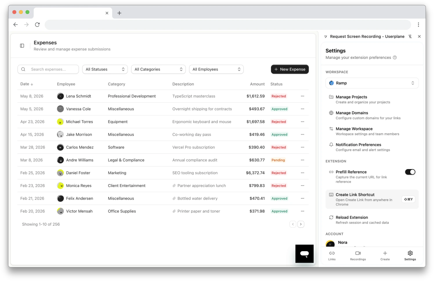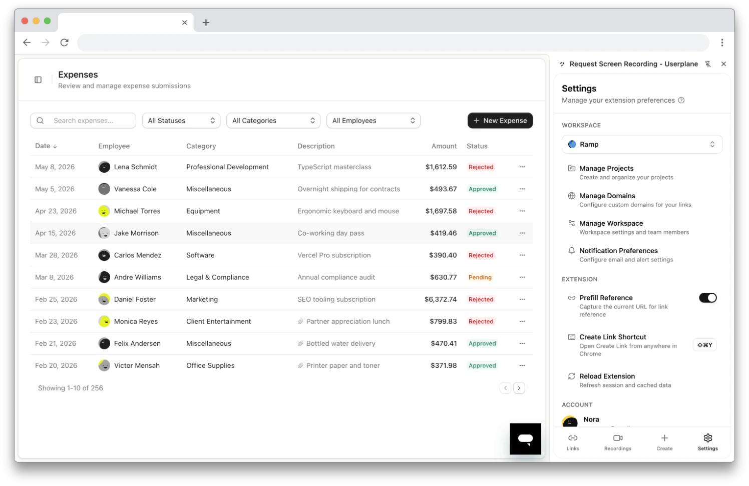 The Settings tab provides shortcuts to your workspace settings in the Userplane dashboard:| Link | Where it goes |