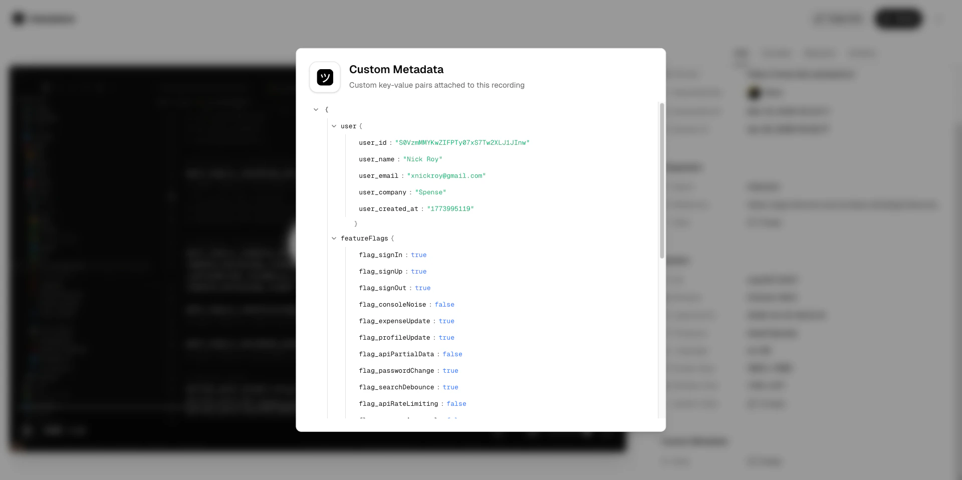 The metadata attached via the URL parameter is carried over to the recording. Your team can see it in the Info panel without asking the customer for any additional context.