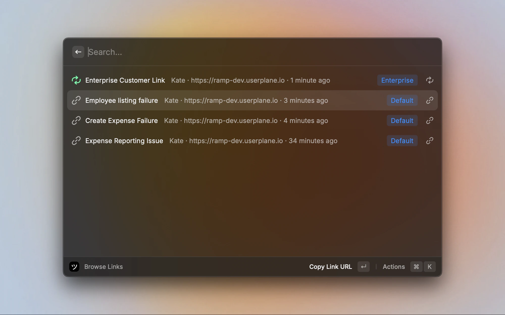 | View Recordings for This Link | Cmd+R | Opens the dashboard filtered to this link’s recordings |