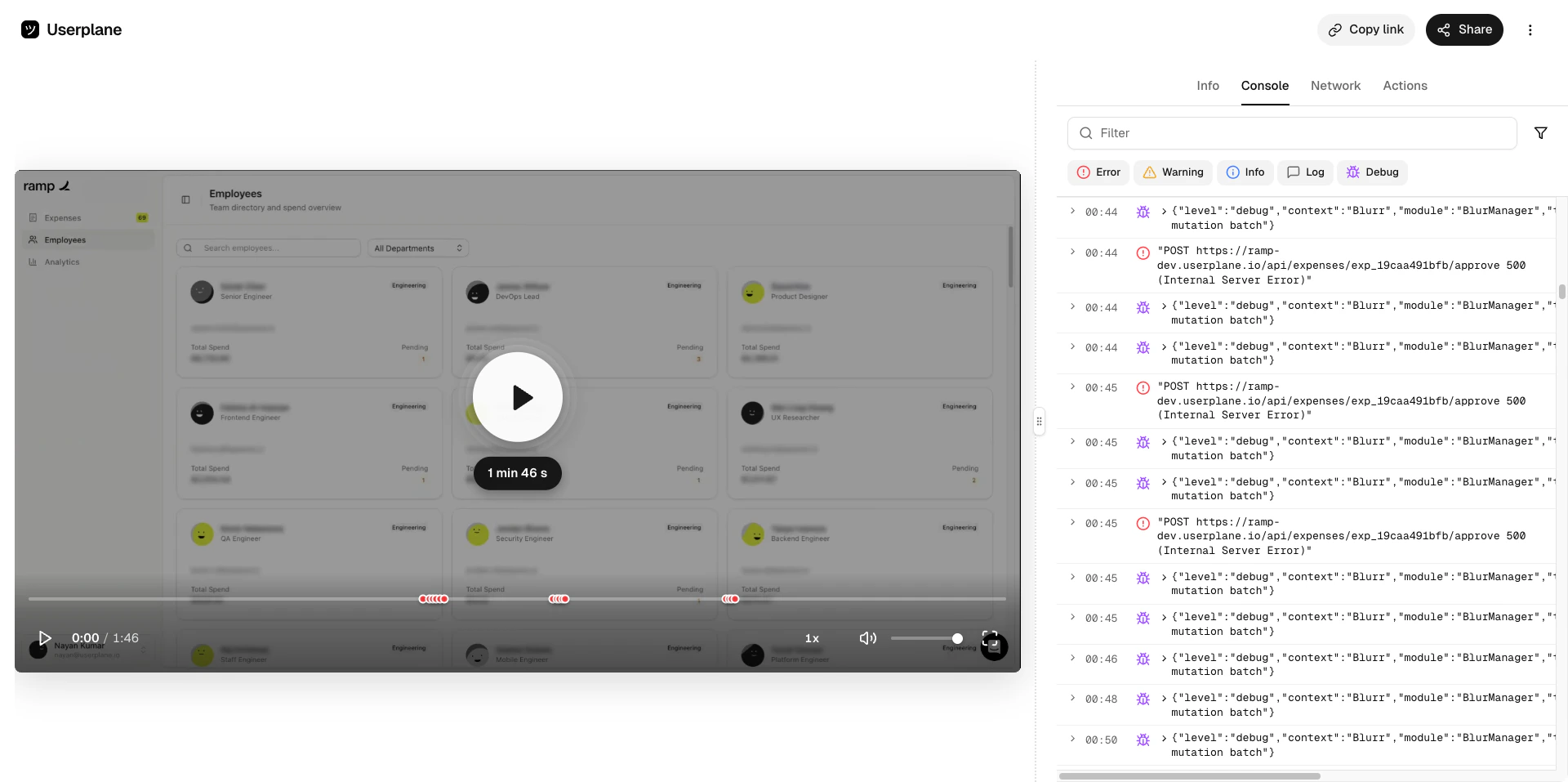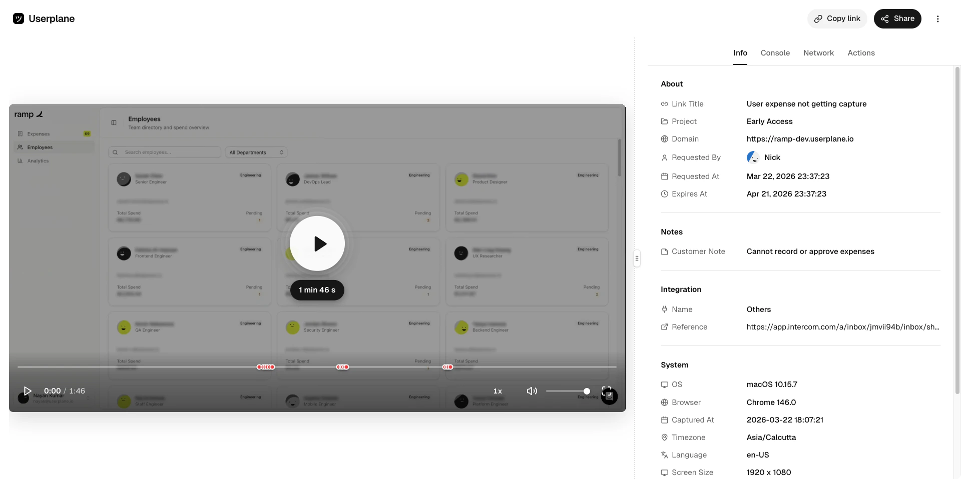 When the customer submits, open the recording in Userplane for full playback.Recording received