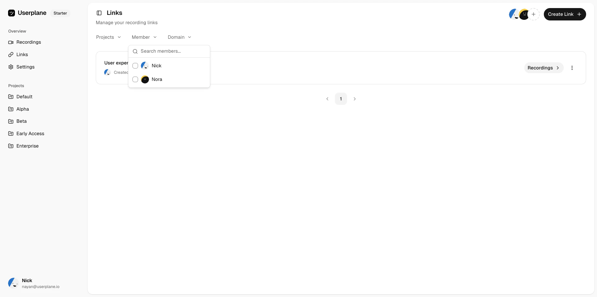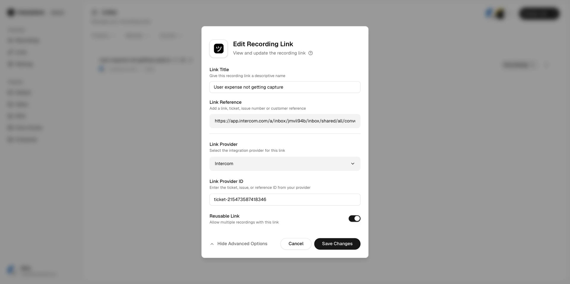 | View | Open the link detail page to see associated recordings. |