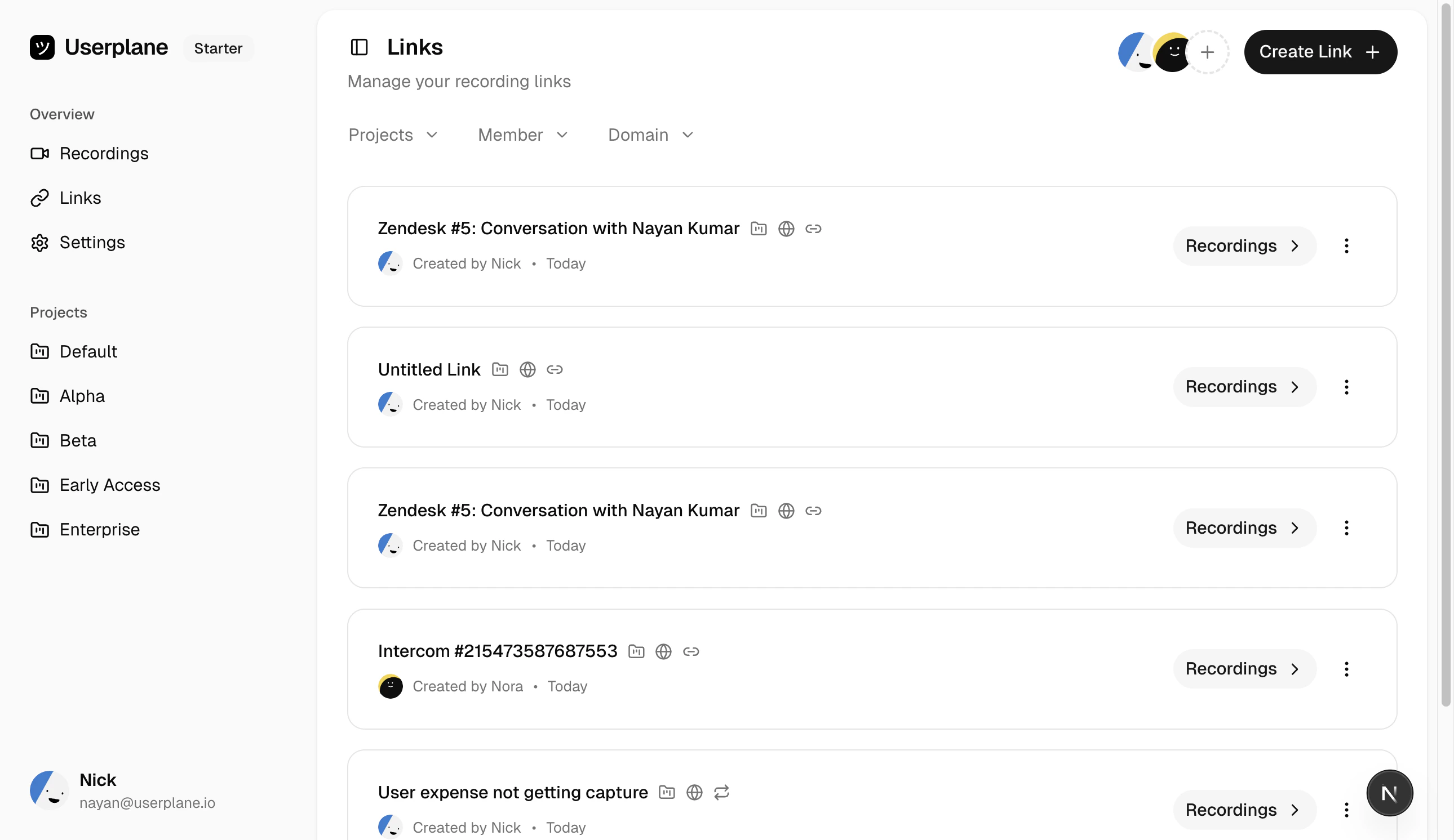 All recordings collected through that link are grouped together. View them all by clicking the