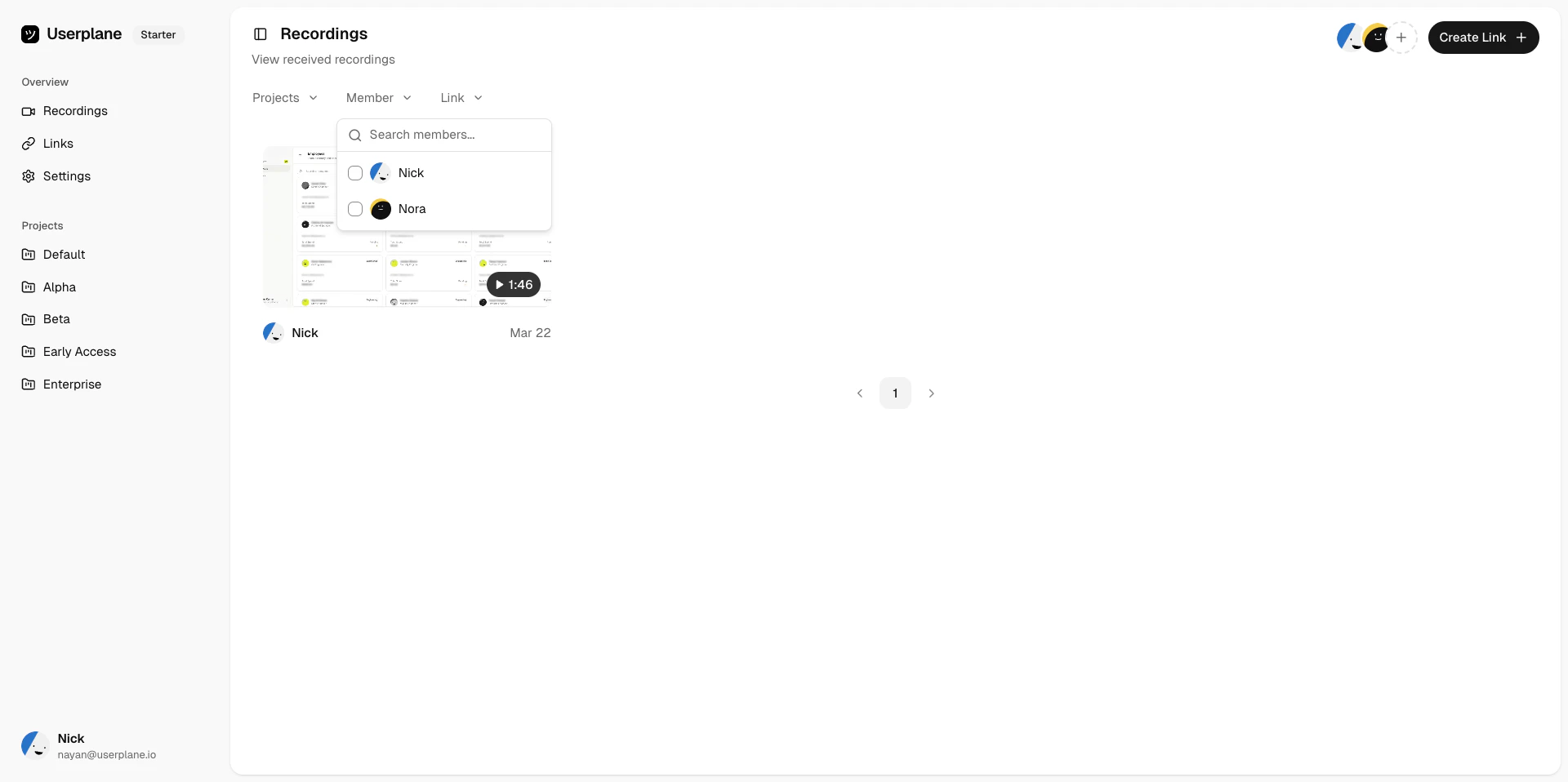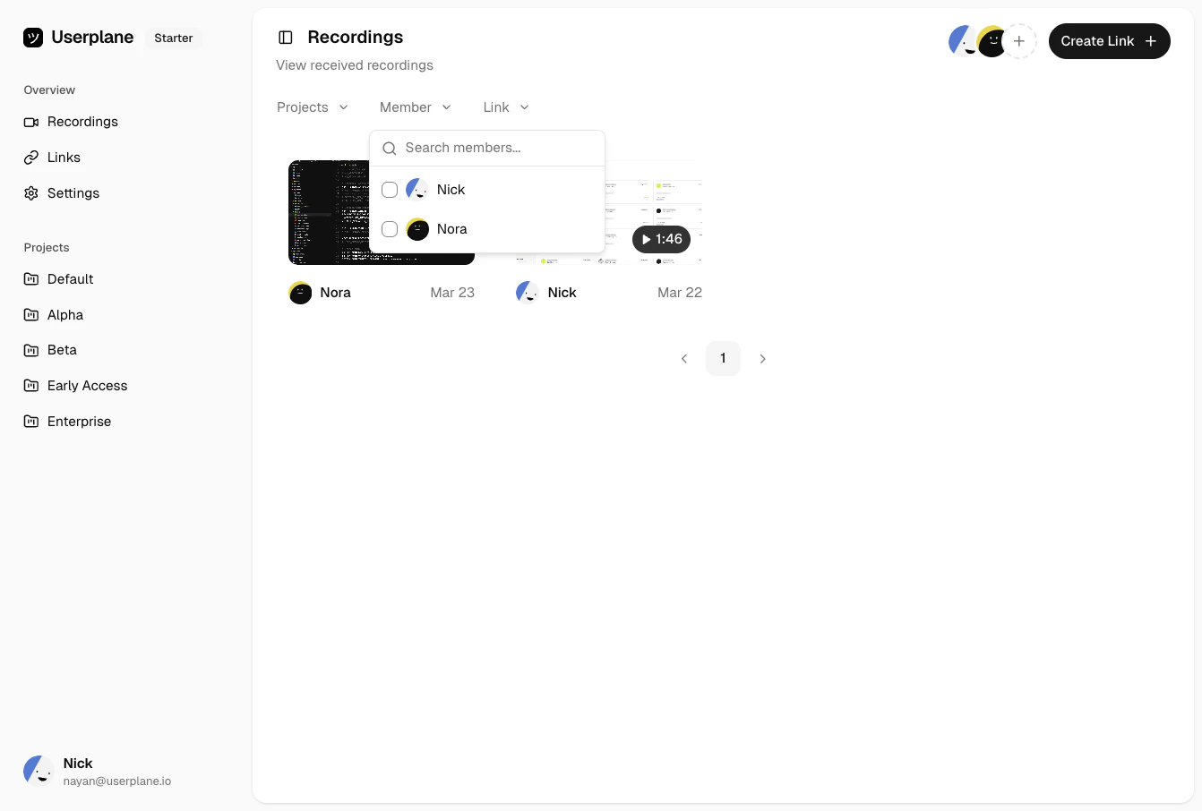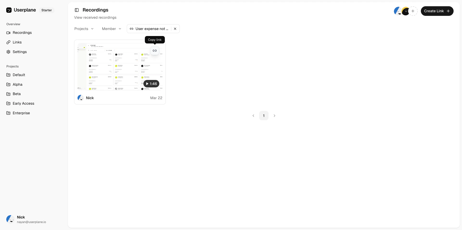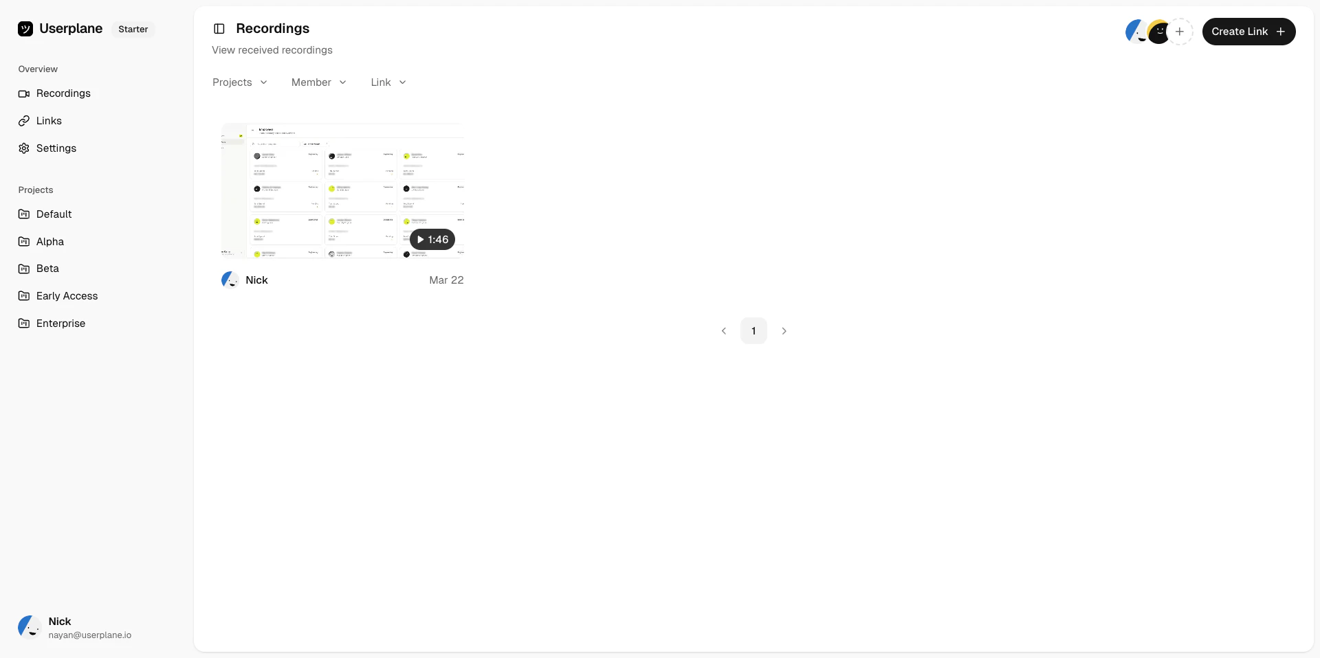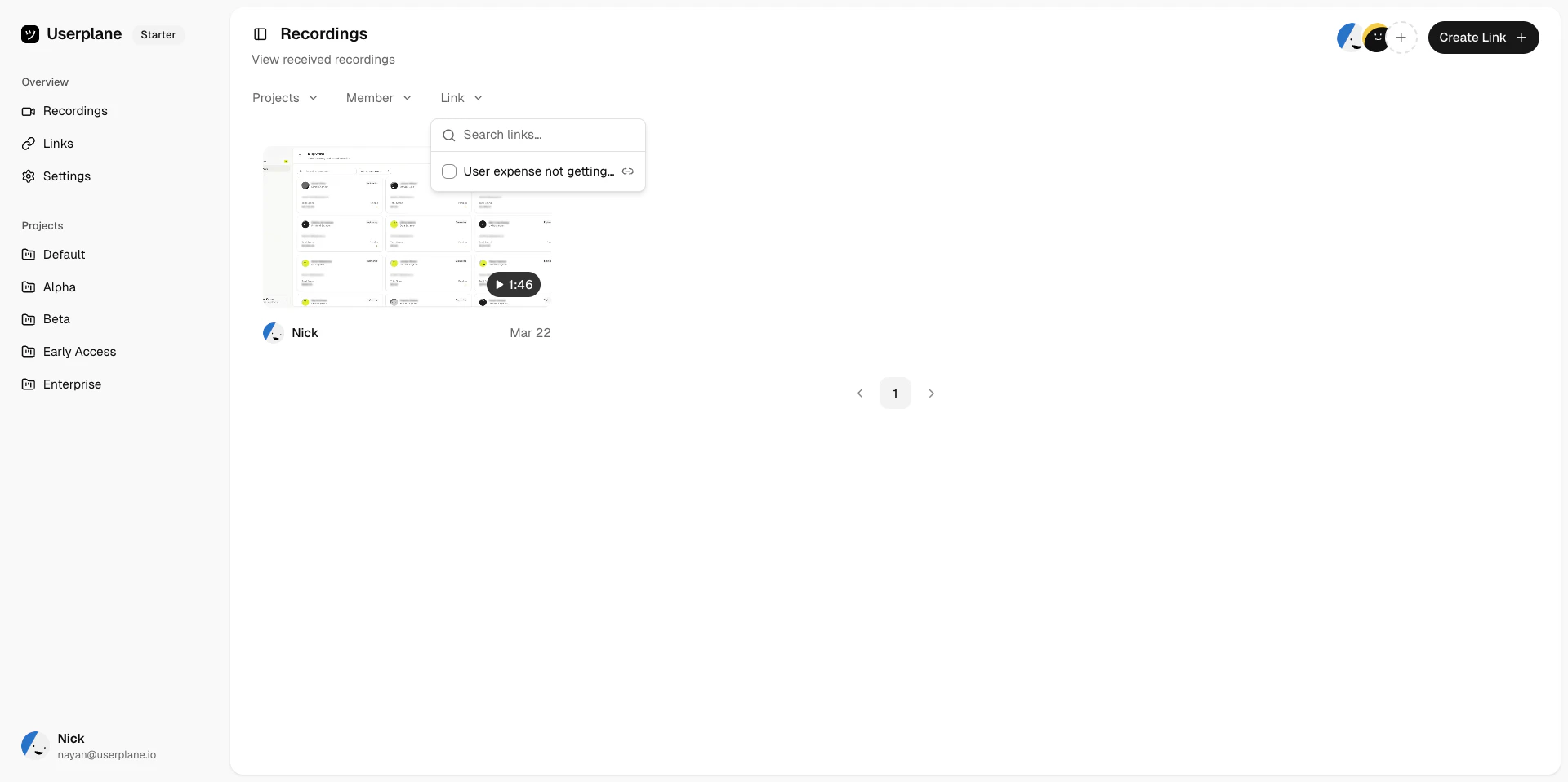 Switch to a project-scoped view to see all recordings and links for a single project in one place.