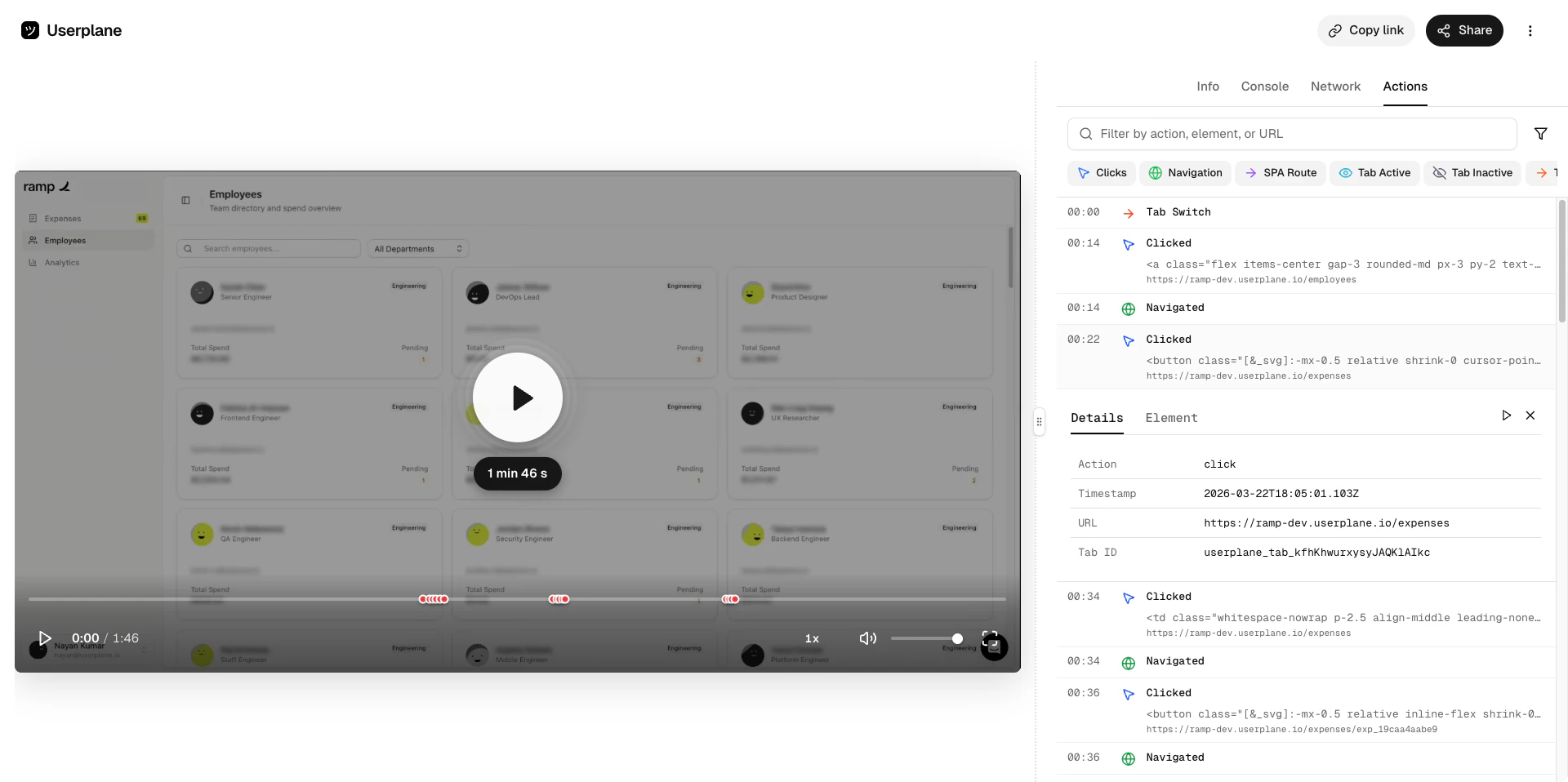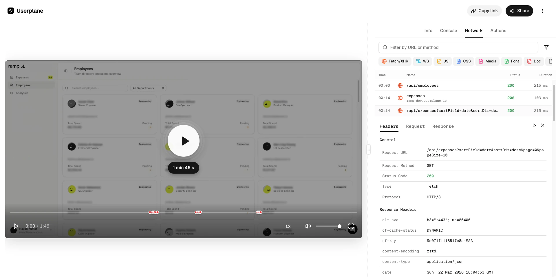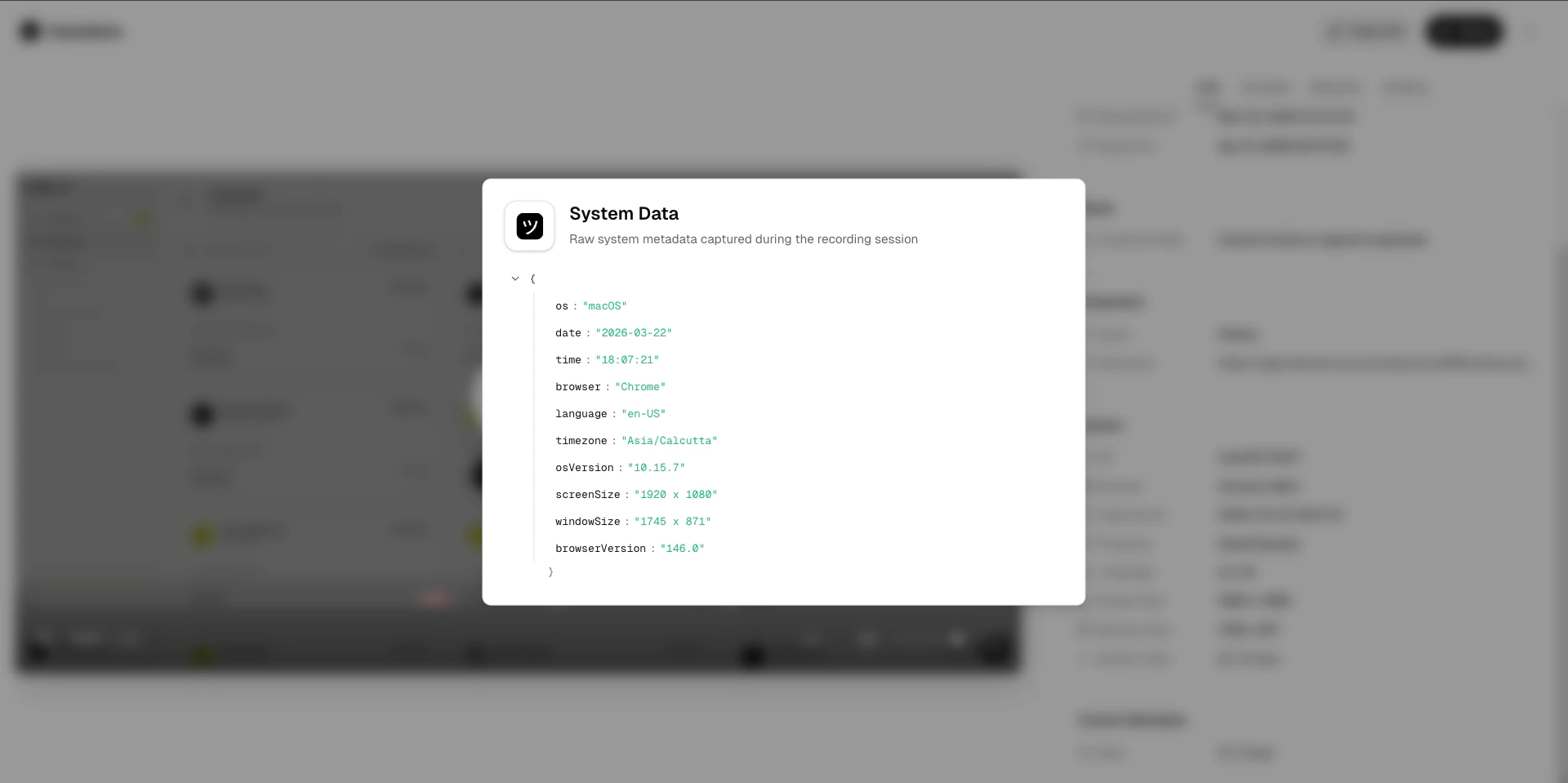 Click any recording card to open the recording playback detail view, where you can watch the video and inspect the captured data.