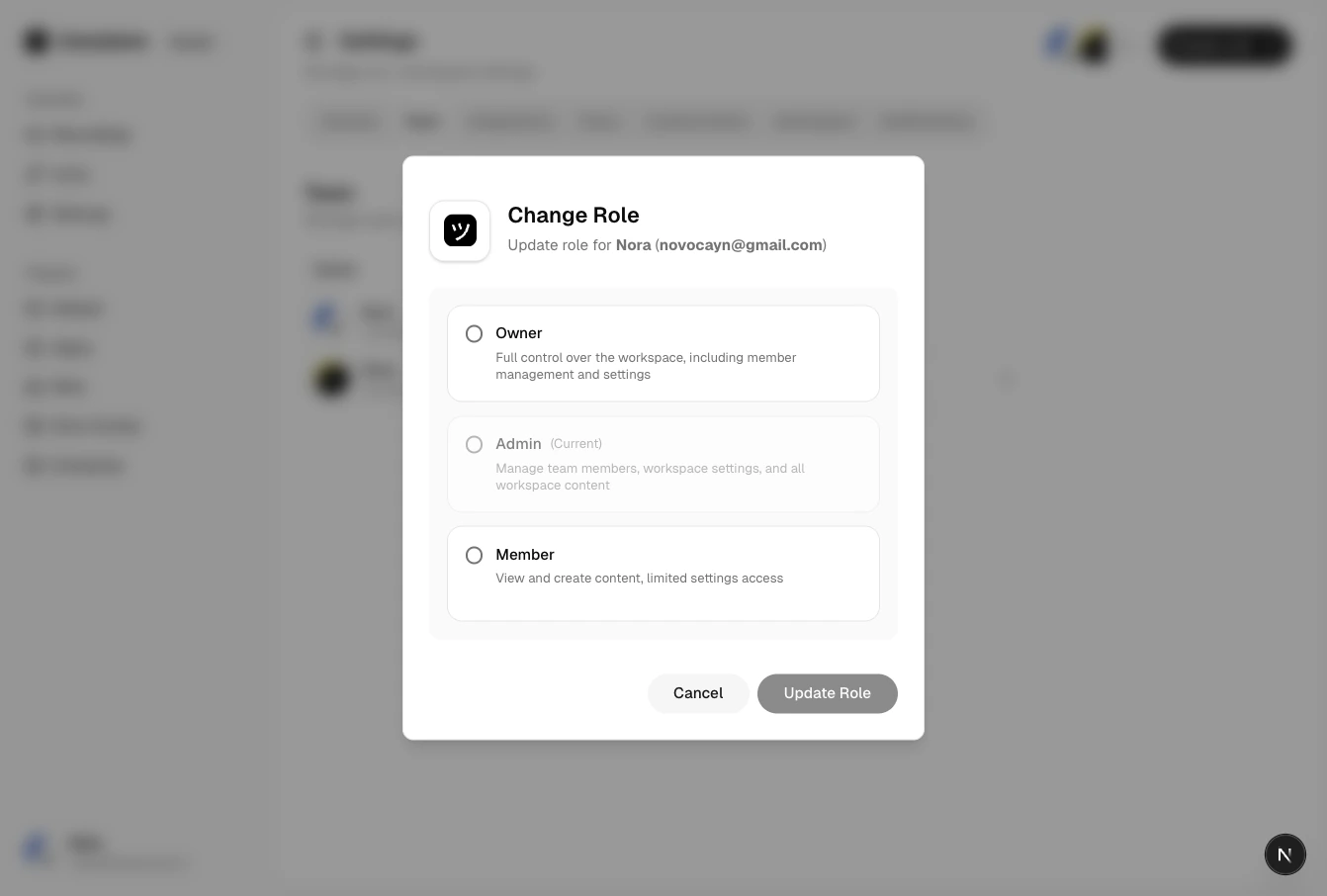 Members can view recordings, create recording links, and manage their own links. They cannot manage workspace settings, invite members, or configure resources. Members can request a plan upgrade, which sends an email notification to workspace owners.